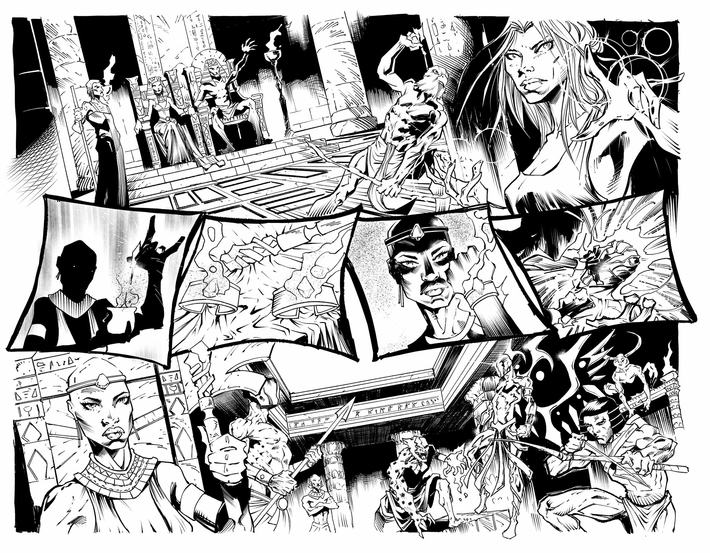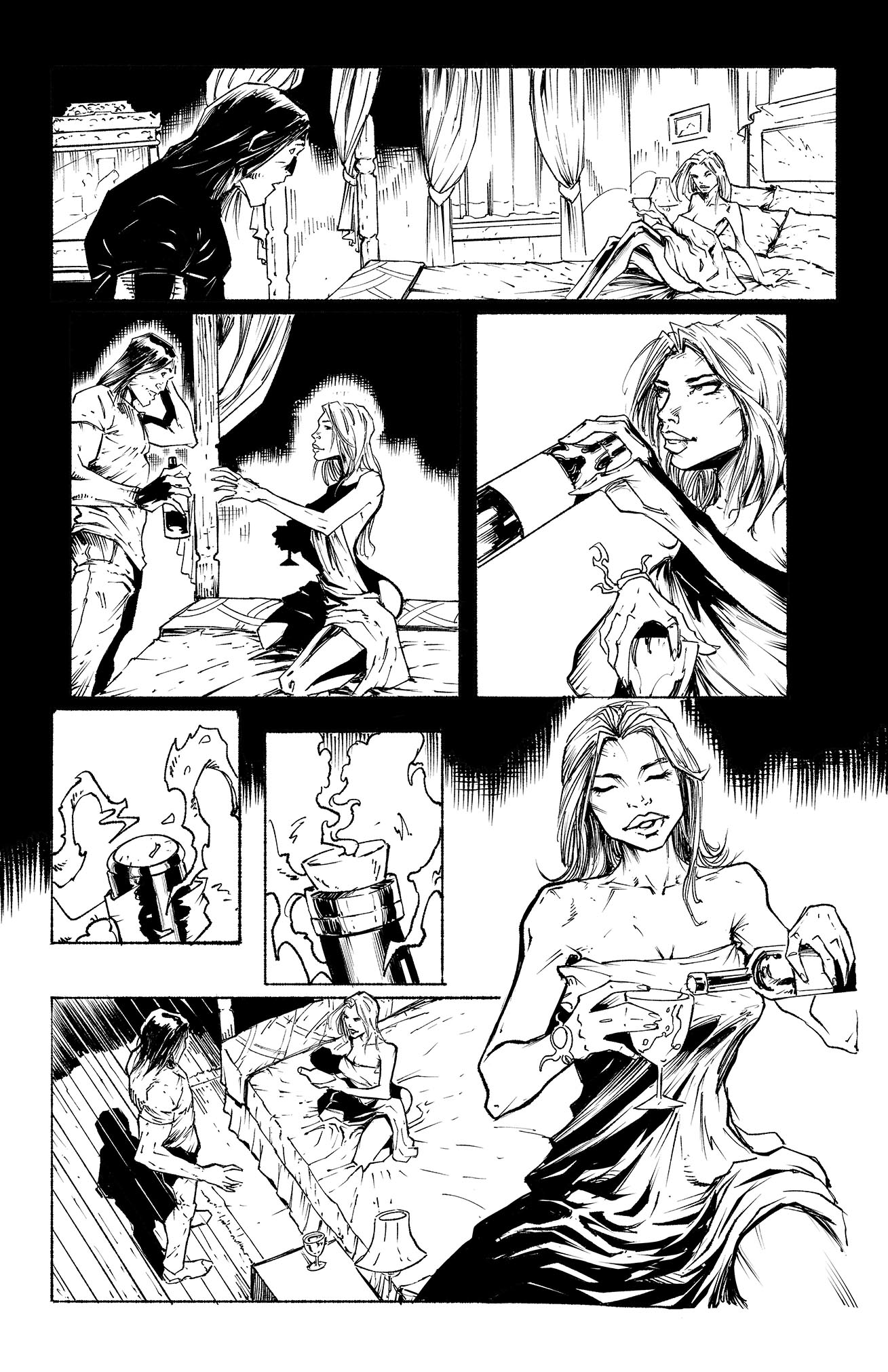 Inked sequential art_ Inks over my pencils for a variety of US independent projects: Signal 29, Kill the Yankee, Rubicon, Red Wave, The Gallows Man, The Dirt Witch.